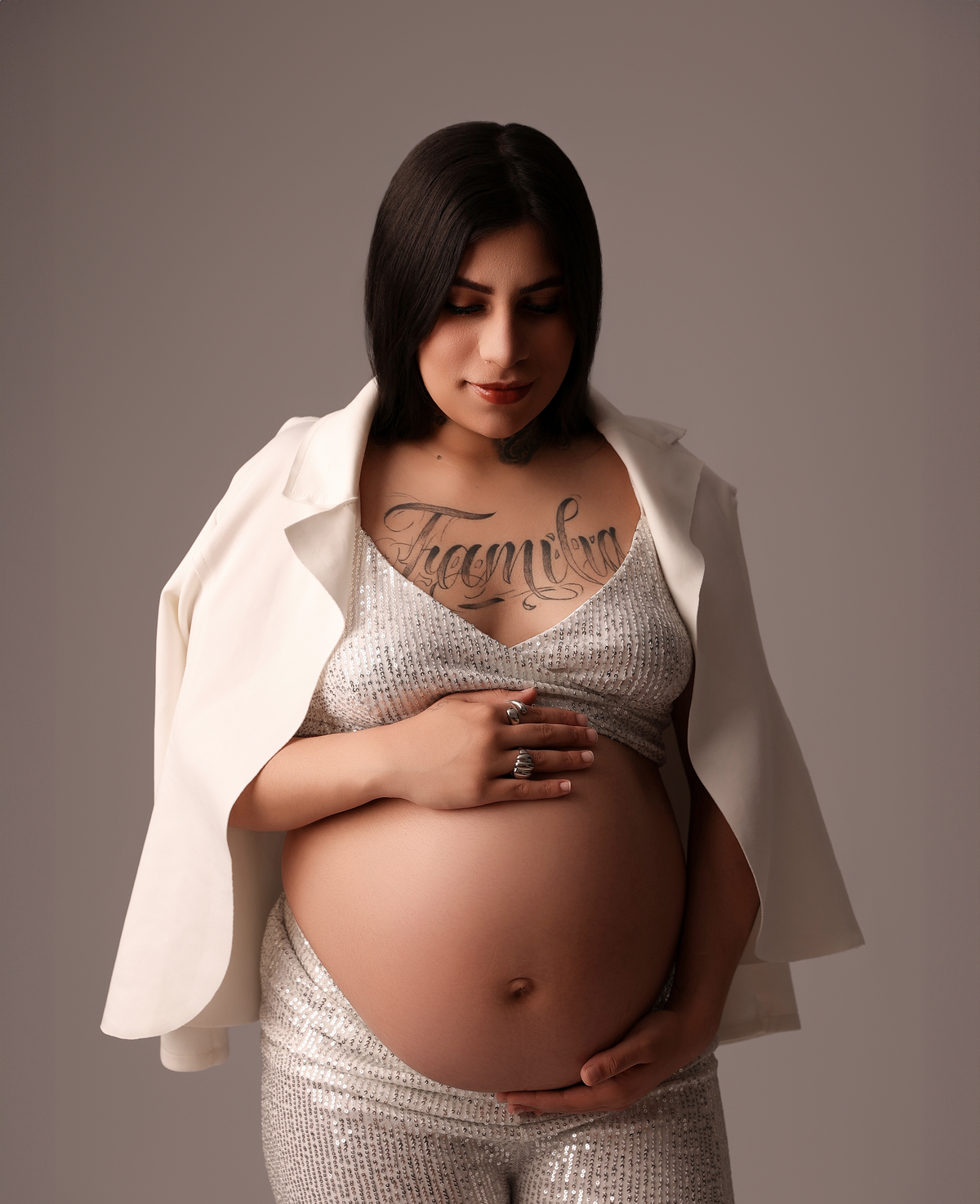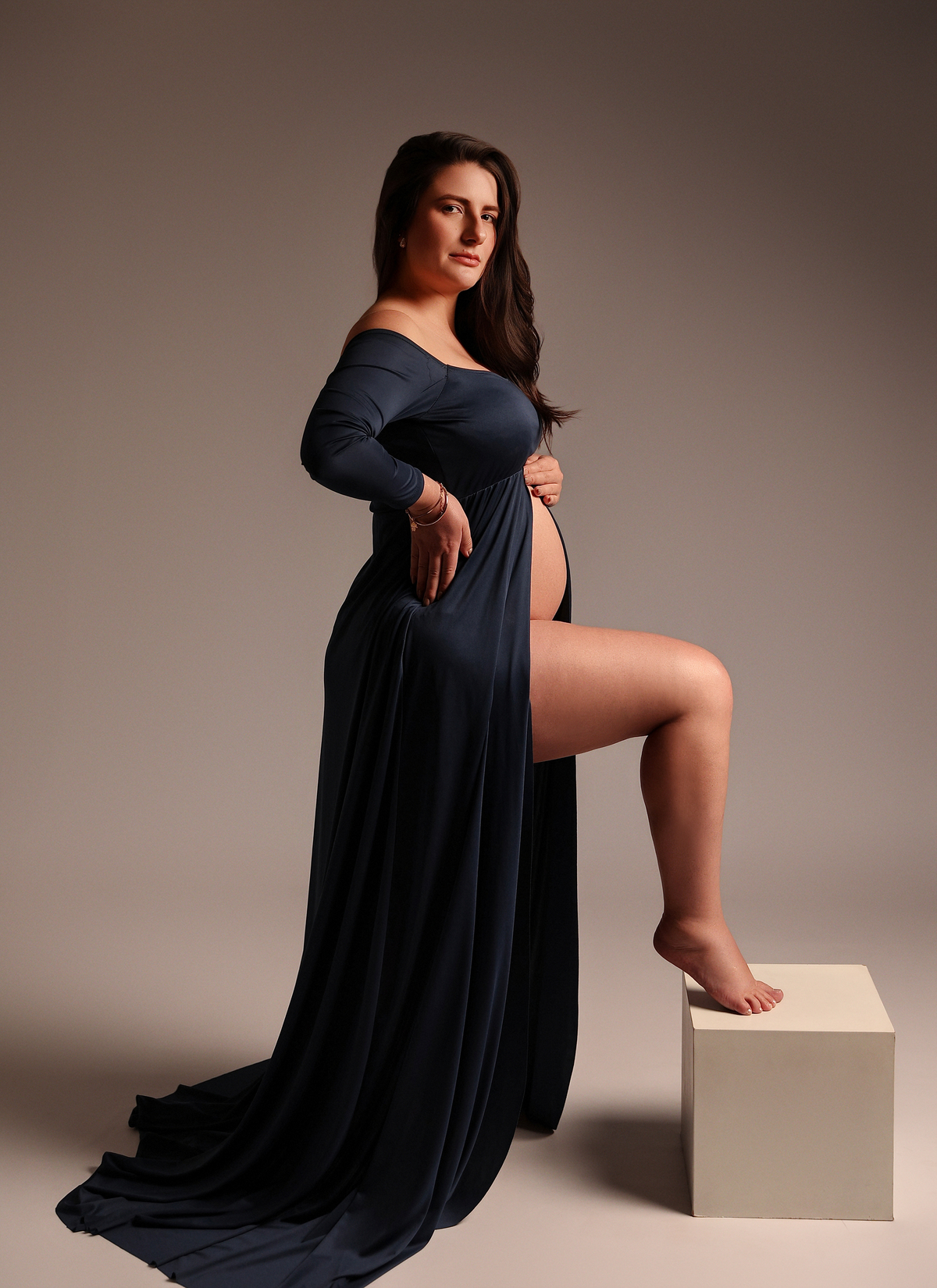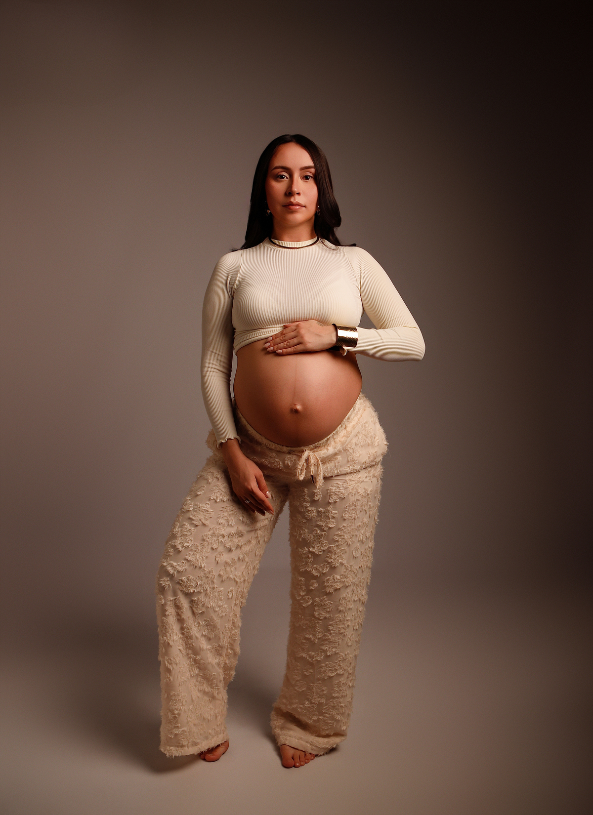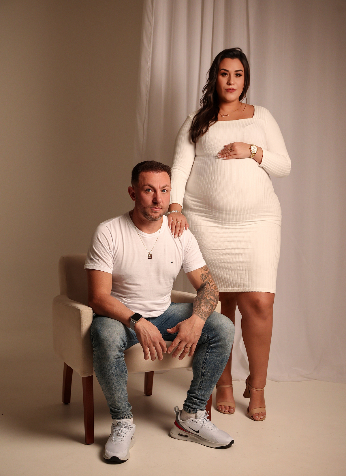 Trabalhamos com vestidos próprios para o ensaio, produção leve e direção atenciosa, garantindo que as fotos revelem toda a beleza, força e doçura que envolvem a gestação.